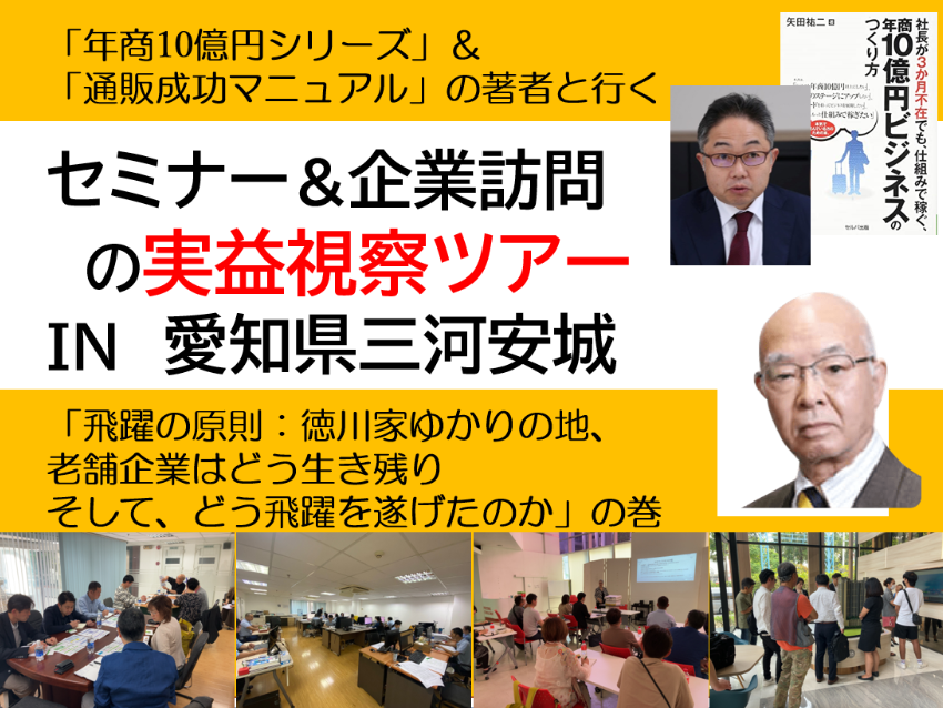年商10億コンサルタント矢田祐二と通販コンサルタント白川博司と共に、この変化の早い日本において、ユニークな進化を遂げ、成長発展している企業を視察します。